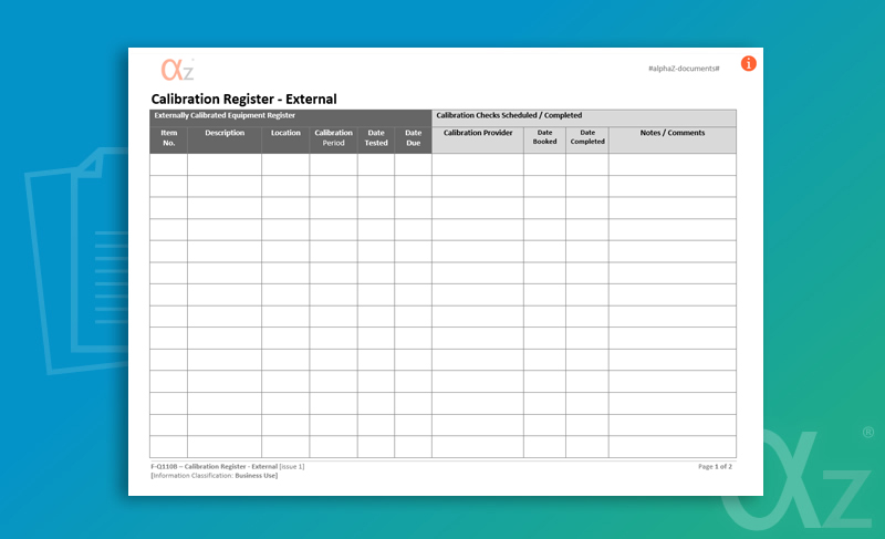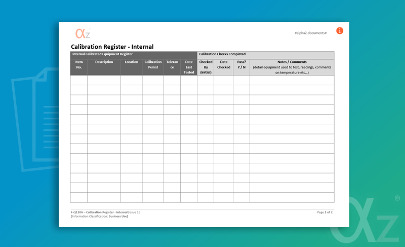F-Q110A Calibration Register Internal - this form is designed for maintaining a listing of equipment, such as measuring equipment, and details all the information relating to the item of equipment that needs to be calibrated;