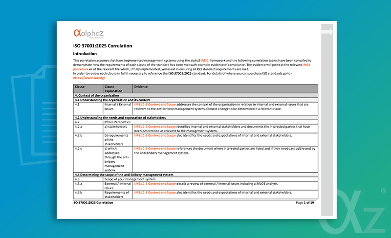 This file is supplied as a guidance document to correlate each clause from the ISO 37001:2025 standard to the IMS1 Manual (and associated resources) to detail where evidence for meeting the requirements of each clause is located.