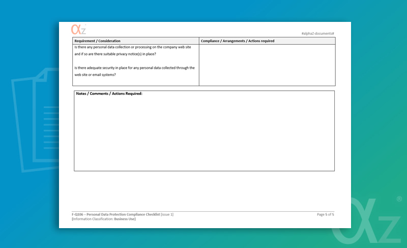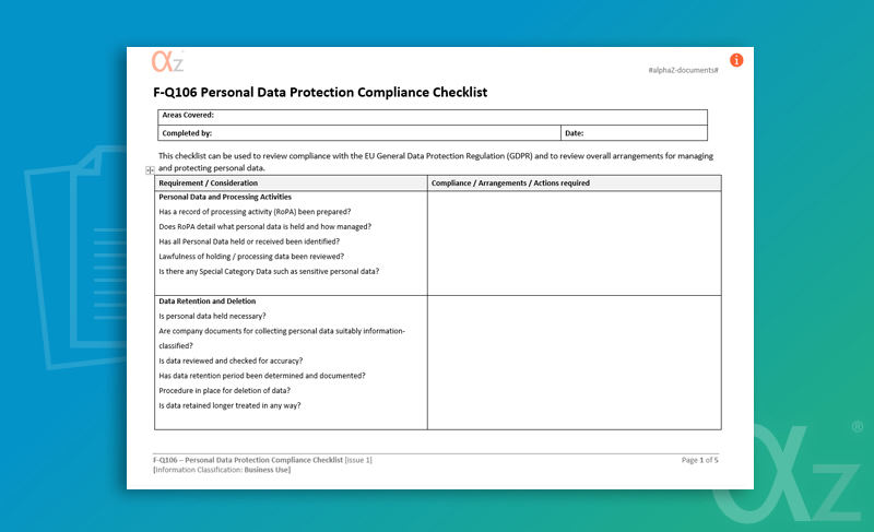 | File Reference : | F-Q106 GDPR Compliance Checklist |